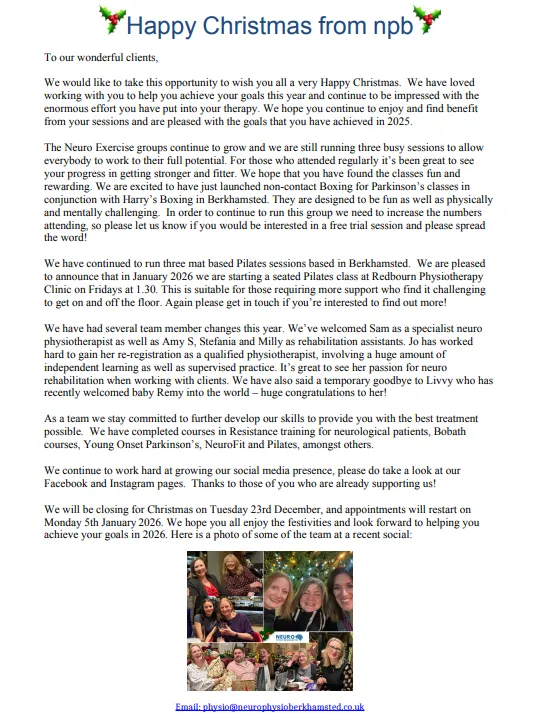 At Neuro Physio Berkhamsted, we specialise in providing expert neurological physiotherapy and occupational therapy tailored to your unique needs. Serving the Herts, Beds, and Bucks areas, our dedicated team is here to support your journey to improved mobility and quality of life.